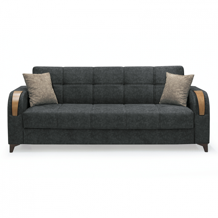 Canapea ZETA extensibila, 3 locuri, cu arcuri si lada depozitare, gri inchis + maro, 225x84x85 cm